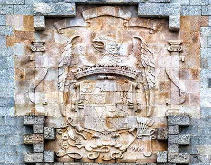 Dos columnas que carecen de utilidad arquitectónica, sin sentido en el conjunto monumental, que estarían vinculadas a Jaquin -la izquierda- y Boaz –la derecha–, las dos columnas de bronce situadas a la entrada del Templo de Jerusalén, construidas por el maestro Hiram Abif, fiel aliado de Salomón, que estaban rematadas por capiteles en forma de cáliz y pétalos abiertos de una flor de lis con una hilera de granadas, fruto de la vida.